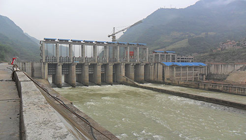 万年桥水电站工程位于金沙江一级支流横江上游盐津县普洱镇上游2.4km处的芭蕉湾,坝址处控制流域面积13471平方公里,多年平均流量243立方米/秒。正常蓄水位389.0m,正常蓄水位以下库容1427万立方米,具有日调节能力,调节库容92万立方米。电站装机容量2×32MW。额定水头20.50m,发电引用设计流量363.6立方米/秒,多年平均发电量29737万kW·h,保证出力17.33MW,单机引用流量181.8立方米/秒,电站装机容量64MW;本电站为横江干流下游盐津~杨柳滩河段梯级开发的第二级,河床式电站。工程区距盐津县城约22km,坝址左岸有川云公路经过。